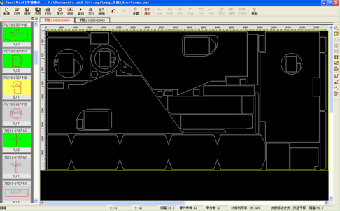 5、先進(jìn)的全自動(dòng)套料功能。采用新的計(jì)算智能技術(shù)和相關(guān)科研成果,對(duì)任意復(fù)雜形狀的異形零件進(jìn)行全自動(dòng)真實(shí)形狀套料,計(jì)算過程瞬間完成,優(yōu)化效果堪稱完美,材料利用率平均提高5%。